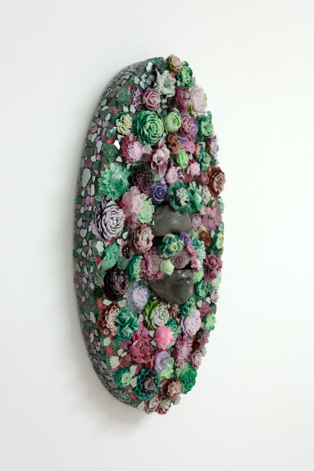 Bloom in Mint & Salmon Pink Posted on May 16, 2025May 16, 2025 by layobright Bloom in Mint & Salmon Pink2024Kiln fused glass, mirrored glass, white gold glaze on custom frame26.5 x 15 x 5 inches
